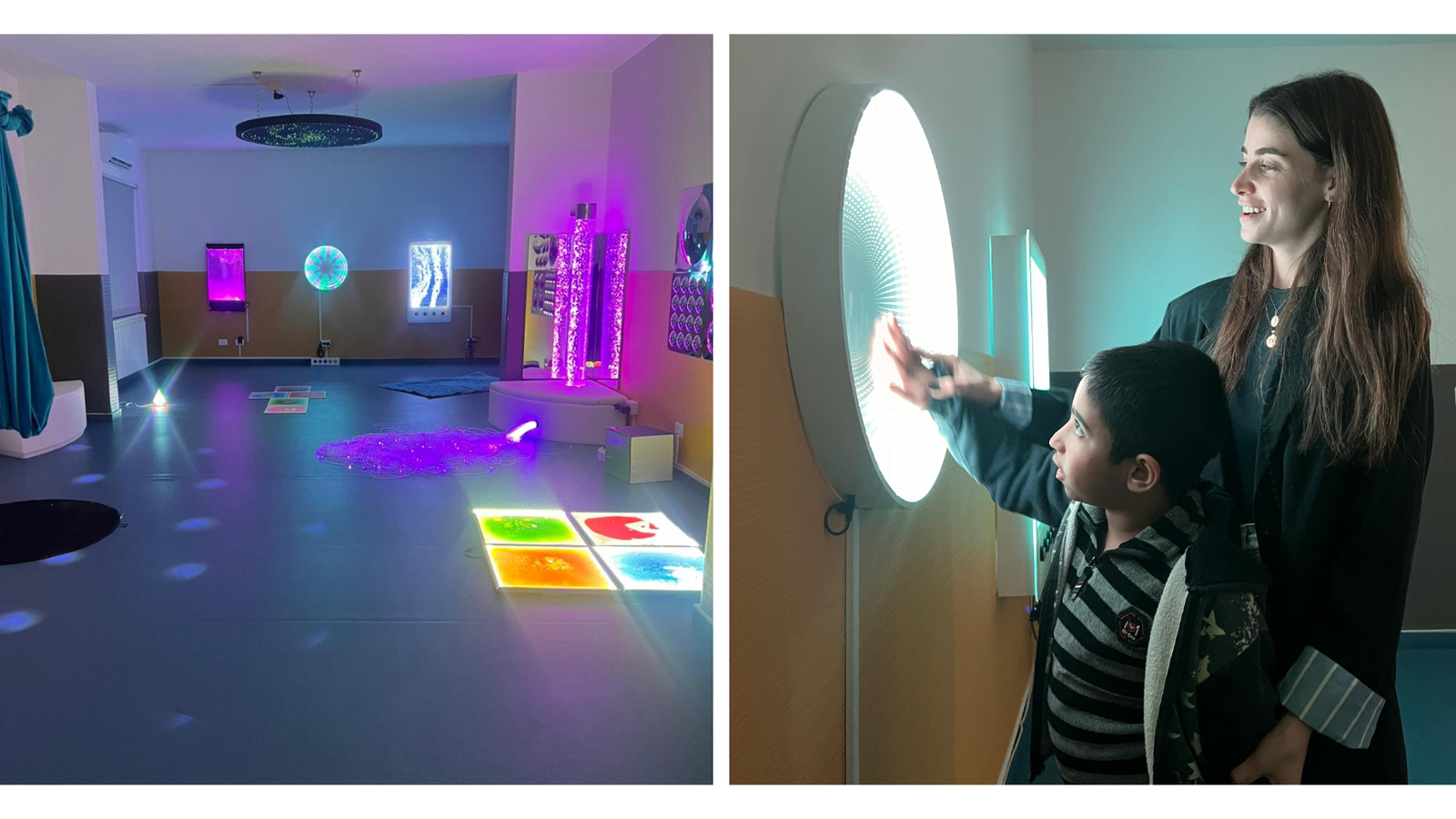 Our Sensory Room is thoughtfully designed to provide a calming and stimulating environment tailored for children with sensory needs. Equipped with specialized tools such as soft lighting, tactile panels, bubble tubes, and sound systems, this space helps children develop their sensory processing abilities. The room encourages relaxation, enhances focus, and promotes emotional regulation through guided activities. It is a cornerstone of our approach to supporting children with autism, Down syndrome, and other developmental disabilities, fostering a safe and engaging environment for growth.